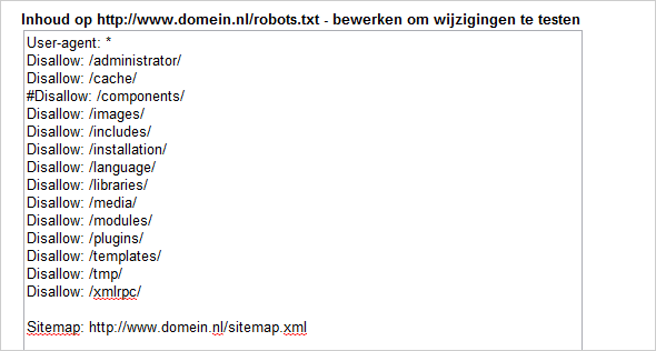 Ook het Merchant Center van Google heeft sinds de lancering enkele veranderingen ondergaan. Een van deze veranderingen is een verbeterde melding van waarschuwingen en fouten in je productfeed. Een veel voorkomende fout is het ontzeggen van de toegang van de map met productafbeeldingen voor Google. Dit wordt tegenwoordig netjes in de foutmelding aangegeven.Maak je gebruik van het open source systeem Joomla! in combinatie met VirtueMart, dan heb je een grote kans dat je productafbeeldingen uitgesloten worden. In de standaard robots.txt wordt namelijk de folder /components/ uitgesloten. En laten daarin nu net je productafbeeldingen staan. Zorg er dus voor dat je productpagina's en je afbeeldingen gewoon gecrawld kunnen worden door Google. Dit kun je in Google Webmaster Tools testen. Ga dan naar 'Siteconfiguratie > Crawlertoegang' en plak je robots.txt regels in het eerste tekst vak en je de URLs van je productafbeeldingen in het tweede tekst vak. Na het testen zou je moeten zien dat Google wordt toegestaan de afbeeldingen te crawlen.